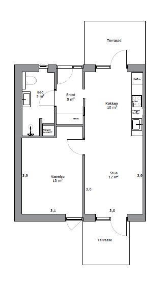 De 8 etplans boliger fordeler sig på følgende størrelser: