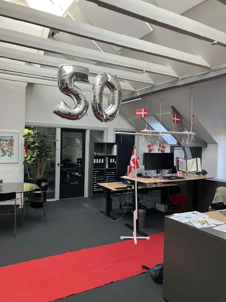 - Til 50 års fødselsdagsfejring på kontoret af Claudia i økonomiafdelingen (5), hvor der blev pyntet op til den store guldmedalje.