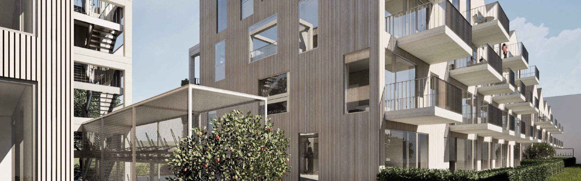 Den nye boligafdeling 54 Banelængerne bliver en del af Kornbyen, som et byggeri i fire etager placeret langs letbanen. Boligerne bliver i et plan og tilgængelige med elevator.